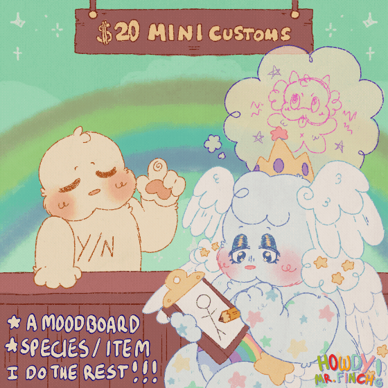 for my mini's its basically a moodboard blindbox! you provide the board and a species and maybe a note but thats it! i dont make changes you get what you get!